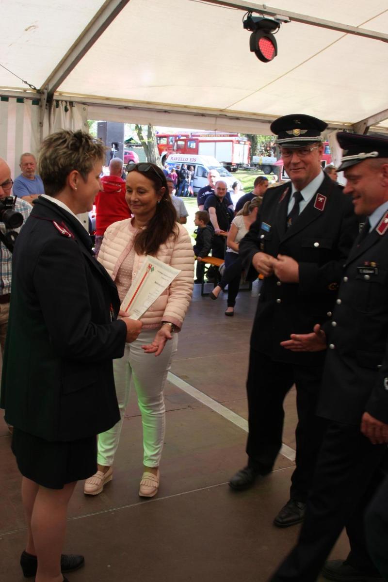 Die Volgfelder nutzten ihr 120-Jähriges, um Mitglieder zu ehren. Für 60 Jahre Mitgliedschaft in den Reihen der Feuerwehr wurde Edo Ritzmann ausgezeichnet. Die Anerkennung für 20-jährige Feuerwehrmitgliedschaft wurde Ines Oeltze, Tobias Voigt und Siegfried Klug zuteil. Oeltze wurde zudem zur 1. Hauptfeuerwehrfrau und Voigt zum Hauptlöschmeister befördert.